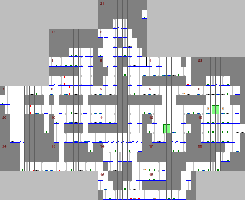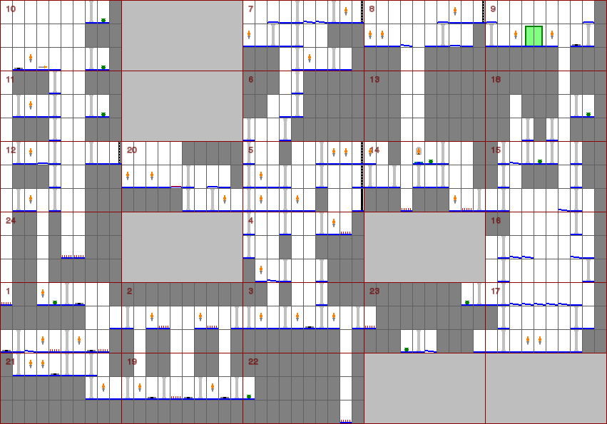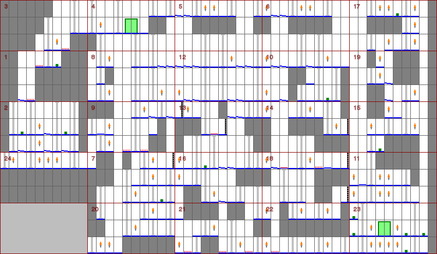 Kirill Terebilov has left level 7, 8, 9 and 10 the same as in Prince of Persia 1. Here are all the simplified maps for 4D Prince. Level 4, 5, 6 and 11 aren't shown because of their new-linking system. However you can extract the maps manually from the game (print-screening). Click on a map to enlarge it.