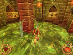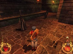 In the first Room you’ll meet a Priest behind the corner. Quickly approach and beat or chop off his head and limbs one by one. He may shed some Coins. Should you got poisoned by now, promptly hurry to the secret entrance of the Gong Hall in the second Room (see [*] further down) and proceed until you seize the vital Phial of Antidote in there.