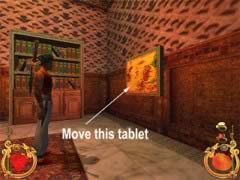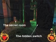 Push this button and a door to a secret Room opens up. Here you will find your main Ring: the Blue Ring! This one is for protection. It will defend you while under attack! Later in the game two extra Jewels will even add to its power. So make sure you find this Ring, or you won’t be able to finish the Game!! And that would be a Shame!