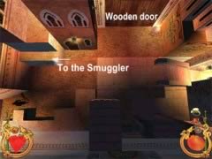 Hit the window 3 times again and the Smuggler will accept your amount of Coins. Then he opens the left door and you may walk in, a secret passage to the entrance to the Palace!