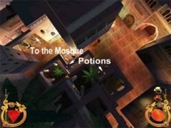 Run and jump : you will find another 120 Gold coins. From here on you may also enter the roof of the Mosque itself.