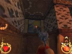 Launch 2 Bombs in a row at him and he’s gone. Take his Key to the doors. But before entering the Palace go left and right and jump on the ledges there to find some goodies.