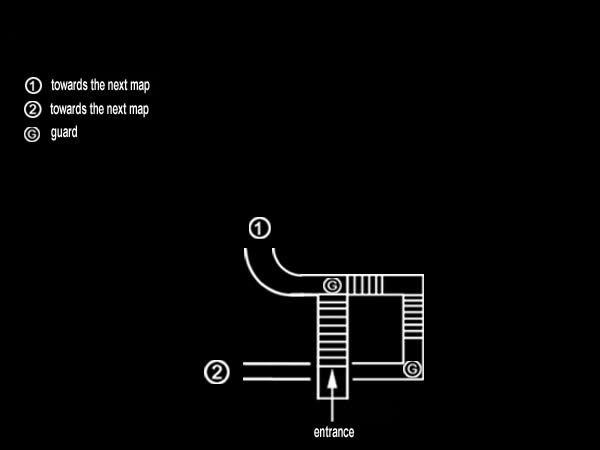 with the entrance Guard in front of the staircase. He won’t let you in for