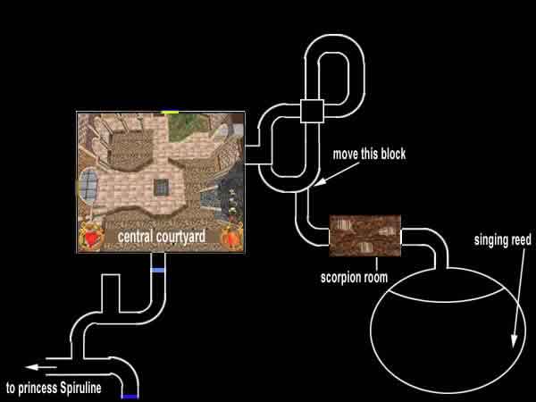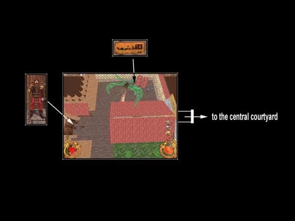 all the way back to the central courtyard and meet two vicious Guards that Ali