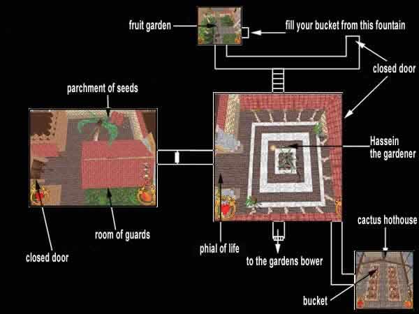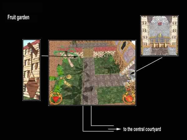 Read the tablet by the doors: “looking for a suitable assistant to the Sultan’s Gardener”. You will understand that you may apply for that precious job when the time is right! To the right are 3 Jars to smash. Find another 40 Gold Coins in there.