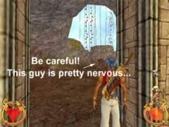 However: they are all very tough adversaries! Turn around and you’ll see a door. Enter. There is a Guard who won’t attack. But you will do. When he’s down, a second one will arrive from the stairs on the right. Wait for him and let him enjoy the eternal fields as well.