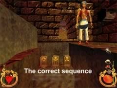 Now enter each of these doors by pressing the right switches. You’ll see a small room with a goodie on the floor. You may grab some of these, but be very quick, or... you’re gone. Each room but one hides a killing device.