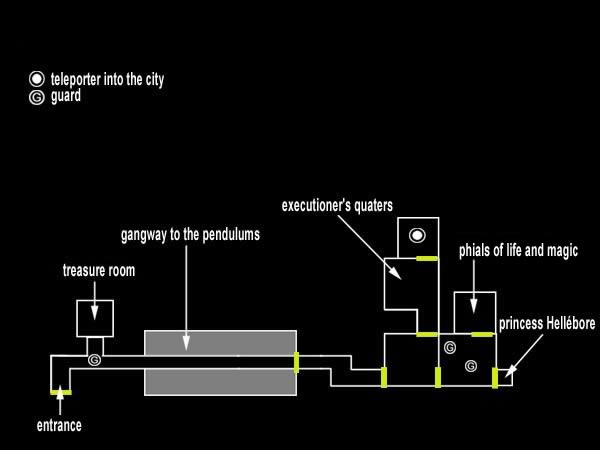 Open the door, and find your best way to defeat both of them with minimal losses. To your left is a door to another room loaded with Phials of Life and Magic! The 2nd door gives access to a prison where Ali will have to free Princess Hellebore.