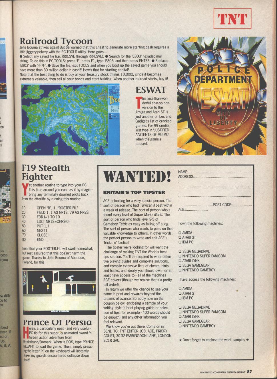 Advanced Computer Entertainment (ACE) - N. 40 (Jan 1991), N. 42 (Mar 1991), N. 55 (Apr 1992)