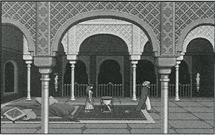 open with a rough scraping of stone on stone. Behind the now-open door, a
