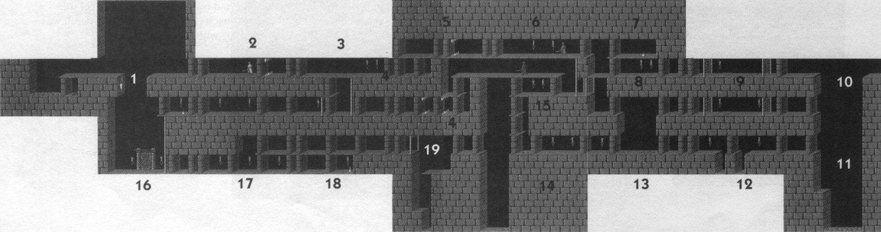 18. Two landings down, I saw a passage leading east. I jumped a gap and