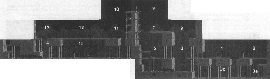 4. I landed in a huge, multi-tiered hallway. Great squared-off columns