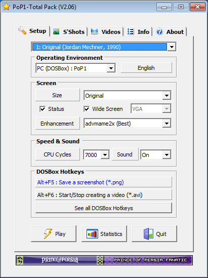 Prince of Persia 1 - Total Pack (PoP1-TP) - An integration of all POP1 stuffs and mods with many user-friendly functions. A must-have package for PoP fans! See the change logs and features for a detailed list.
